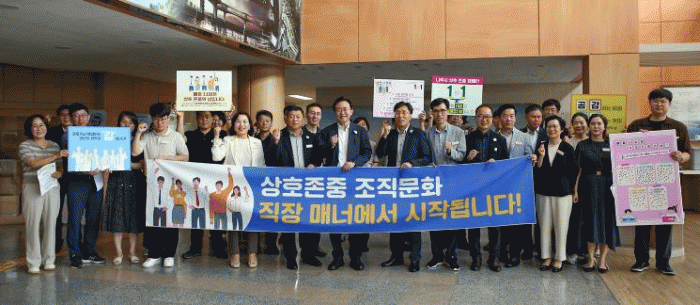 서로 존댓말 쓰기, 웃으며 인사하기, 칭찬 주고받기, 모욕적·성차별적 언행하지 않기, 상대방 말 경청하기 등 직원 간 상호 존중 문화 동참을 적극 홍보하고 있다.
