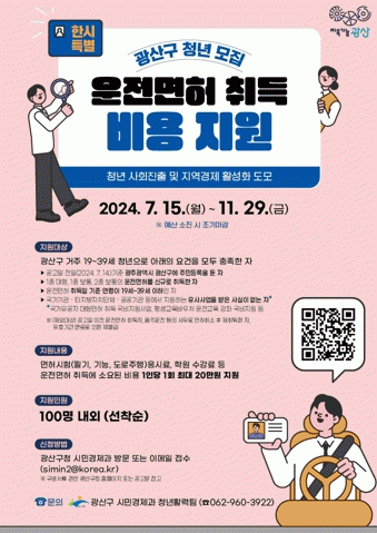 자세한 내용은 광산구 누리집의 공고문에서 확인하거나, 시민경제과에 전화로 문의하면 된다.