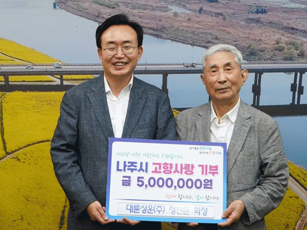 윤병태 시장은 “나주를 향한 애정과 관심으로 고향사랑기부제에 동참해 주신 회장님께 감사드린다”면서 “보내주신 마음을 토대로 지역 소상공인과 함께 성장할 수 있는 나주시가 될 수 있도록 하겠다”고 화답했다.