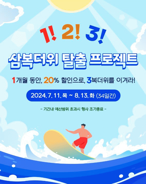 1개월간 20% 할인된 가격으로 3복더위를 이겨내자!