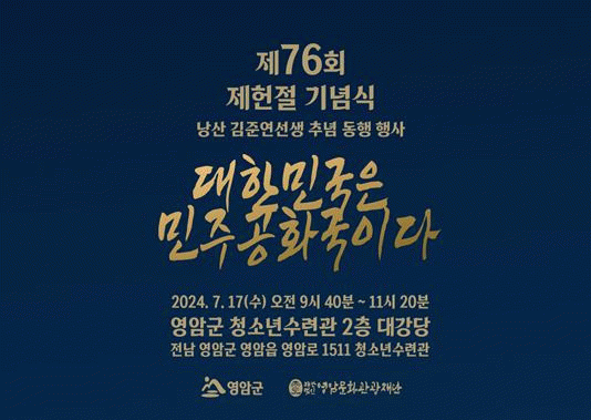 행사는 전 KBS아나운서 출신 김병찬씨가 사회를 맡고 전남의 우수한 젊은 성악 그룹 브리앙트(소프라노 신이슬, 바리톤 진주혁, 메조 소프라노 강혜원)와 영암고등학교 학생들이 함께 식전 공연에 참여, 기념사 및 영암초등학교 학생의 헌법 전문 낭독과 공로상 수여, 낭산 김준연 선생 추념식을 가질 예정이다.