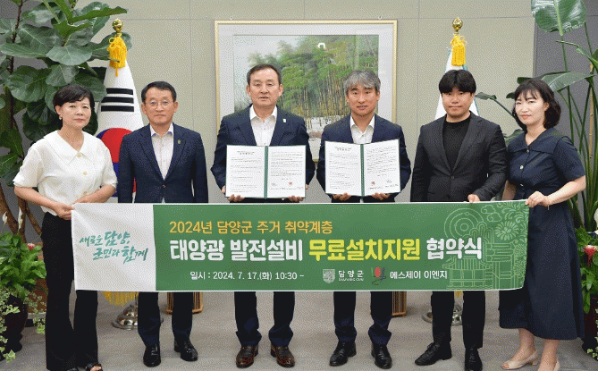 협약을 통해 담양군은 대상자를 조사 후 선정하고, ㈜에스제이이엔지는 5년 동안 매년 5가구씩 총 25가구에 태양광 설비·설치와 5년간 무상 관리 등 안전 점검을 지원한다.