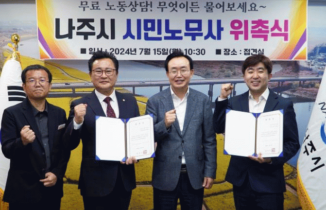 윤병태 나주시장은 “노동 관련 문제로 고충이 있는 시민과 영세사업자에게 무료로 제공되는 노무법률 상담이 조금이나마 도움이 되길 바란다”며 “앞으로도 우리 지역 근로자의 근로권 보호와 영세 사업장 노무관리 지원 등 공정한 일터 환경 조성에 최선을 다하겠다“고 말했다.