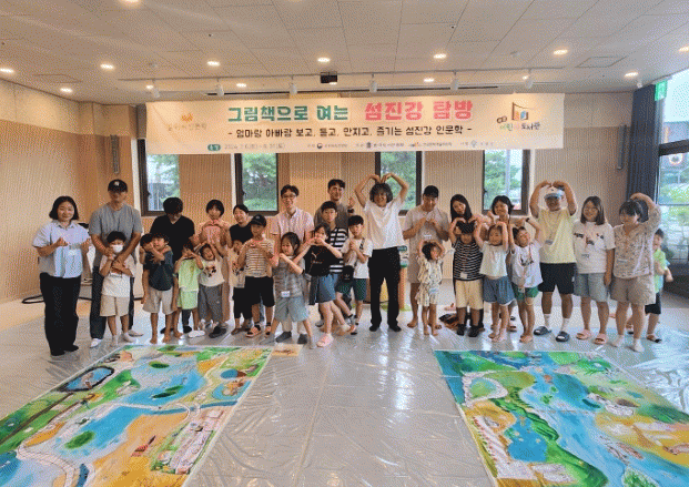 그림책에 담겨진 그림과 숨은 이야기, 작가가 경험하고 느낀 섬진강에 대해 함께 이야기하는 시간을 가졌고, 거대한 캔버스에 다 함께 그림을 그려 섬진강을 완성하는 프로그램을 진행했다.