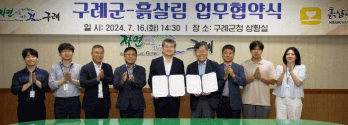 김순호 군수와 이태근 흙살림 회장은 협약서에 서명하며, ▲친환경 농업 실천 ▲유기농산물 소비 촉진 ▲탄소중립과 흙살리기 행사 지원 ▲토양 환경 개선을 위한 자문활동 등에 적극 협력하기로 약속했다.