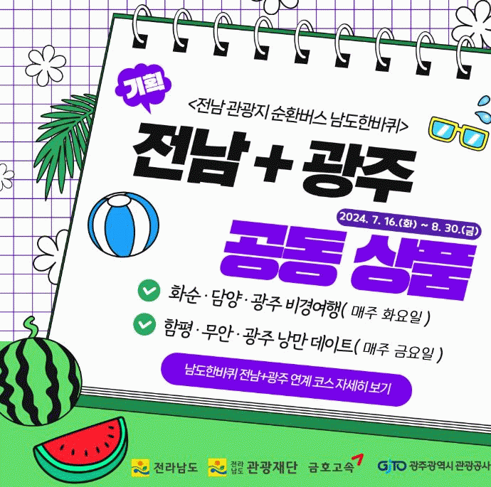 토요일과 일요일 운행코스를 통해 화순적벽, 소쇄원, 함평자연생태공원, 영광백제불교 최초 도래지 등 남도의 주요 관광지를 함께 둘러보도록 해 여름철 관광객의 발길을 이끌 예정이다.