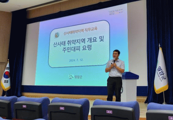 산림조합중앙회와 함께한 이번 교육은 △산사태 경각심 제고 △취약지역 주민 비상연락망 안내 △산사태 예·경보시 주민 대피체계 숙지 △산사태 발생 사례 및 영상 시청 등이 내용.