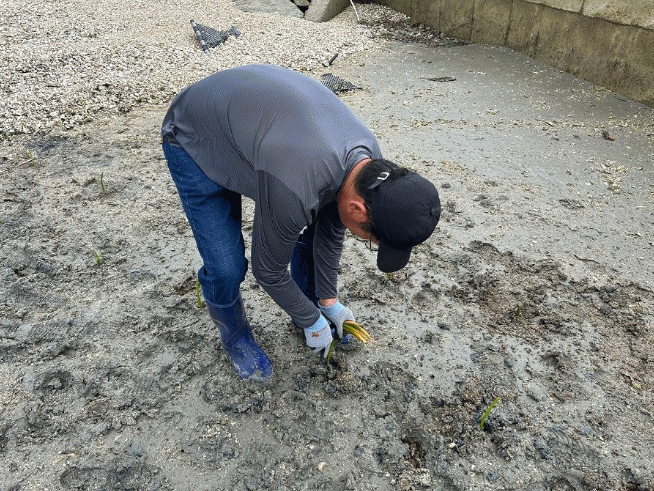 이번 재배시험에서는 일본산 맹그로브 종자 120개체와 베트남산 400개체 등 총 520개체를 죽연리 갯벌에 시험 식재했다. 현재까지 현지 적응시험을 위해 이식된 맹그로브 종자는 잘 생육하고 있으며, 식재 후 생장 특성과 우리 지역 갯벌과 기후환경에서의 적응 여부를 모니터링 할 계획이다.