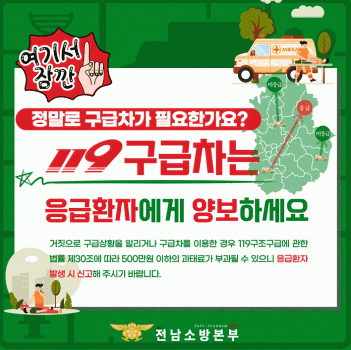 최신석 소방서장은 “군민 여러분의 높은 의식과 적극적인 협조가 매우 중요하다”라며 “응급환자의 생명과 안전을 위해 비응급 상황에서는 119 신고를 자제해 주시길 당부드린다”라고 전했다.