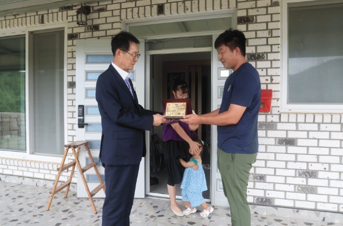 출산공로패를 받은 김00은 “출산과 육아는 많은 희생과 노력이 필요한 일이지만, 군수님께서 직접 방문 격려해 주셔서 큰 힘이 된다”라며 “앞으로도 아이들을 위해 더 좋은 정책을 만들어 주시라”고 부탁했다.