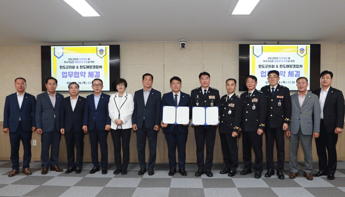지난 18일 두 기관은 의장, 서장, 군의원, 해경 과장이 참석한 가운데 해양사고 예방 및 군민의 생명과 재산을 보호하기 위한 업무협약을 체결했다.