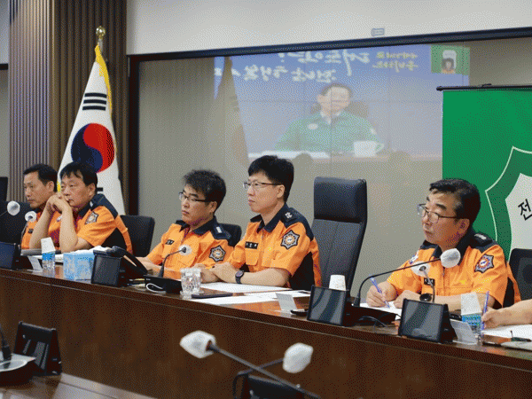 전남소방본부는 19일 오전 본부장 주재로 본부 과·팀장 참석한 가운데 집중호우 대응 긴급 회의를 개최했다.
