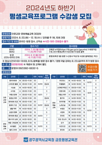 자세한 내용은 금호평생교육관 누리집을 확인하거나 운영과로 문의하면 된다.