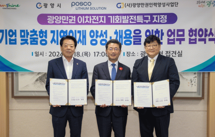 이번 협약체결로 포스코리튬솔루션(주)은 향후 인력채용 단계에서 '이차전지소재 관련 인력양성 사업'수료생에게 가점을 부여하는 등 지역 청년 채용에 협조하기로 했으며, 산업 신기술 정보 및 관련 직무능력에 필요한 교육을 진행해온 (사)광양만권인력양성사업단은 기업 맞춤형 인력양성에 더욱 힘쓰기로 했다.