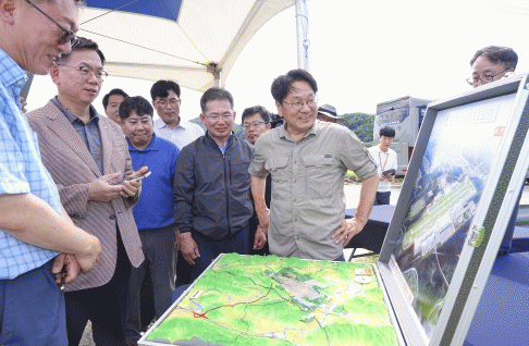 이후 강 시장과 김 군수는 공항 조성 현장을 찾아 실제 사업부지를 축소해 한눈에 볼 수 있는 모형 조감도를 통해 활주로, 소음완충지역 등 시설배치 계획을 살펴봤다.
