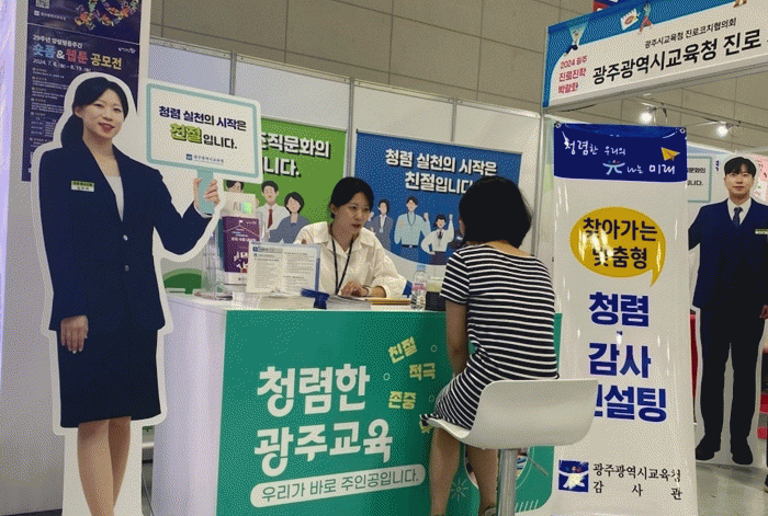 이번 컨설팅은 시교육청 주관으로 열리고 있는 광주진로·진학박람회에 방문한 학생·학부모·교직원을 비롯한 시민을 대상으로 운영됐다. 컨설팅은 청렴은 친절·공정·적극·투명·존중·신뢰라는 인식이라는 점을 알리고 청렴한 광주교육을 홍보하는 방식으로 진행됐다.