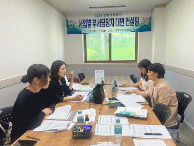 이날 컨설팅에는 전남여성가족재단 전문 컨설턴트 2명이 나서 공직자들과 1대1 맞춤형 방식으로 진행해 성별 영향평가서 작성 방법, 성평등 개선과제 도출 등을 도왔다.