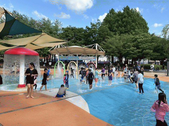 지난 19일 개장한 불무공원 물놀이장에는 조합놀이대, 워터드롭, 바닥분수 등 다양한 물놀이시설과 탈의실, 그늘막 등 편의시설을 설치했으며, 어린이 안전을 위해 안전요원을 배치하여 운영한다.