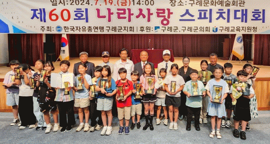 초·중학생 21명과 6·7세 어린이 11명 등 33명의 연사가 열띤 경연을 펼친 끝에 김소영 양(구례북초 3년)이 대상을, 이수진 양(구례중앙초 3년)과 김예건 군(간문초 3년)이 최우수상을 차지했다.