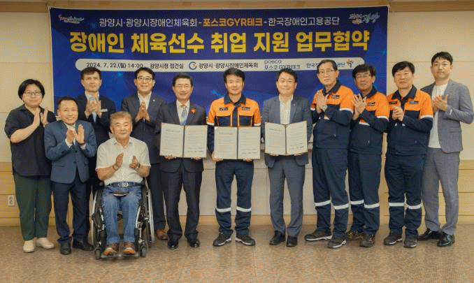 광양시와 광양시장애인체육회는 장애인 체육선수 추천과 채용 후 사후관리를 맡게 됐으며 포스코GYR테크가 오는 8월 1일 장애인 체육선수 7명 채용하기로 했다.