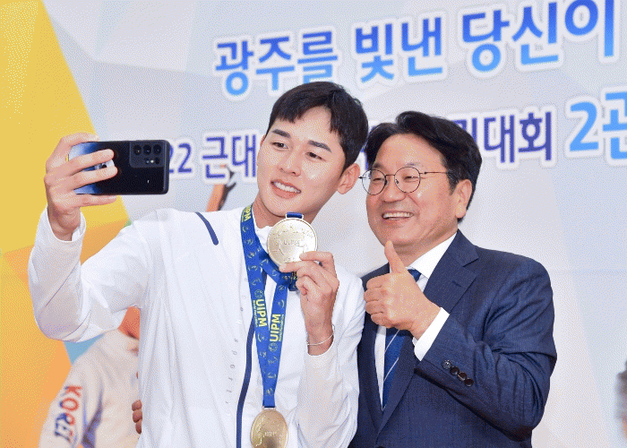 강 시장은 제33회 파리올림픽 대회 개막을 사흘 앞둔 23일 막바지 훈련과 컨디션 조절에 나선 전웅태 등 광주시 소속 선수단에게 “뜨거운 심장으로 새로운 도전에 나섰다”며 “파리에서의 힘찬 비상을 광주시민과 함께 응원하겠다”고 격려했다.