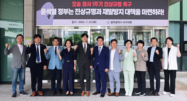 이에 서구의원 일동은 진상규명과 책임자 처벌을 위한 국회의 조속한 국정조사와 윤석열 정부의 근본적인 재발방지대책 수립을 강력히 촉구했다.