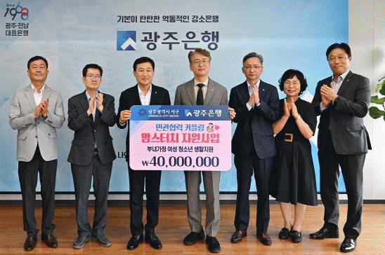 광주광역시 서구는 23일 광주은행으로부터 여성 청소년들을 위한 맘스터치 사업비 4000만원을 기탁받았다. 서구는 이 후원금을 이혼, 사별 등 가정환경으로 엄마가 부재중인 여성 청소년을 위해 사용할 예정이다. 서구지역사회보장협의체 아동?청소년 분과 여성위원들이 착한맘(MOM) 멘토로 나서 여성 청소년들의 속옷과 화장품 구입 등을 돕고, 가족 외식, 영화관람, 문화체험 등 심리적 안정도 지원할 계획이다.