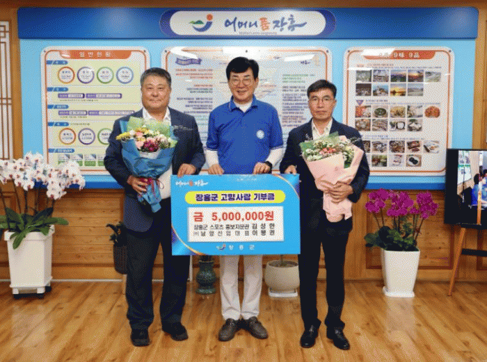 지난 22일 장흥군 스포츠 홍보 자문관인 김성한 전 기아타이거즈 감독과 주식회사 남양산업 이봉권 대표는 물축제 성공을 기원하며 고향사랑기부금 500만원을 기부했다.