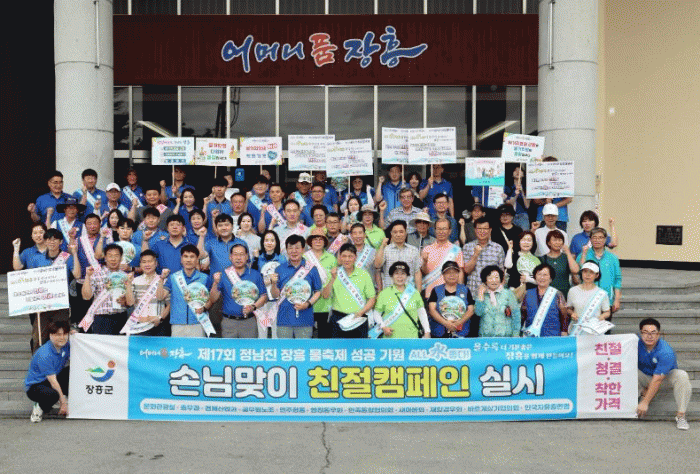김성 장흥 군수는 “지역의 모든 역량을 모아 성공적인 물축제를 준비하고 있다”며 “이번 친절 캠페인을 통해 물축제에 방문하는 관광객들에게 장흥군을 알리는 계기가 됐으면 한다”라고 말했다.