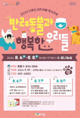 먼저 신용도서관은 초등학생들이 좋아하는 반려동물에 관한 도서를 활용하여 ‘반려동물과 행복한 우리들’ 주제로 다양한 활동을 펼치고 운암도서관은 각종 놀이를 통해 도서관 친밀감을 높이고자 ‘도서관을 플레이하다’ 주제의 강좌가 진행된다.
