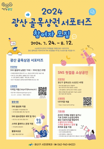 한편, 광산구는 골목상권 서포터즈와 함께 누리소통망 활용 방법을 배울 소상공인도 함께 모집 중이다.