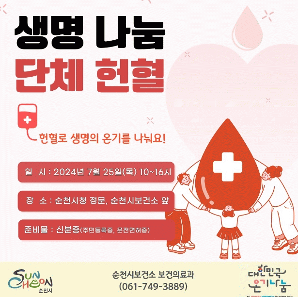 단, 예산 소진 시 상품권 지급은 조기 종료될 수 있으니 유의해야 한다. 헌혈 관련 문의는 순천시 보건의료과로 하면 된다.