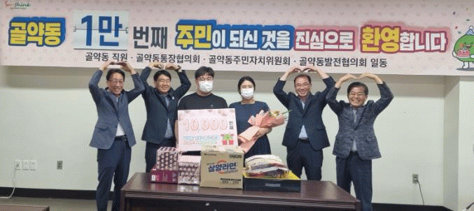 골약동의 1만 번째 가족이 된 김우영씨(39)는 순천시 해룡면에 거주하다 가족 3명이 골약동으로 함께 전입했다.