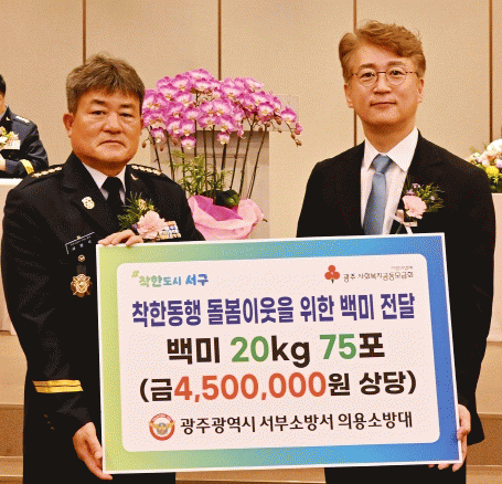 이 백미는 24일 취임한 서방석 의용소방대장이 축하화환 대신 받은 후원물품이다.