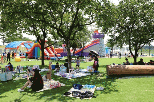 2023년 정원박람회 기간 중 처음으로 선보인 ‘오천 워터아일랜드’는 재정비를 거쳐 더욱 풍성하게 돌아왔다. 작년 이용자들의 의견을 적극 반영해 그늘막을 확충하고, 유아용 에어돔과 물대포도 구비했다. 더욱 안전한 물놀이를 즐길 수 있도록 연령별로 수심이 다른 풀장도 설치했다. 선착순으로 이용권을 배부하는 워터 아일랜드는 개장 첫 주말부터 도심 속 여름휴가를 즐기려는 가족들로 성황을 이루며 호평을 얻고 있다.