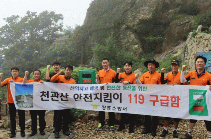 산악사고에 대비해 시민들이 자주 찾고 있는 관내 천관산 주요 등산로(탑산사, 천관산정상, 금수굴 코스, 양근암 코스, 금강굴 코스)에 119산악구급함을 설치ㆍ운영을 실시한다.