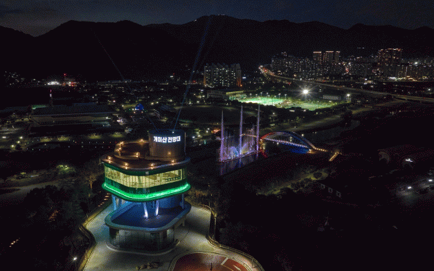 음악분수와 개미산 전망대 담당 부서에서는 믿을 수 없는 적극성으로 설계용역, 예산확보, 인허가 절차 이행 등을 완료했고, 주민들의 적극적인 협조로 토지보상 문제도 잡음 없이 해결했다. 꽃강길 음악분수대는 2023년 2월, 개미산 전망대는 같은 해 6월 공사를 시작했다. 제한급수 이야기가 나올 정도로 가물었던 때였지만, 중요한 공사들을 시작하자 4달 동안 1,200㎜가 넘는 비가 내렸다. 해갈에 감사함도 잠시, 홍수 피해를 우려할 만큼 작업조건은 좋지 못했다. 그럼에도 담당 부서에서는 안전사고 예방을 철저히 하여 단 한 건의 사고나 인명피해 없이 2023년 10월 보도교 경관과 음악분수대 설치를 끝냈고, 2024년 6월에는 개미산 전망대를 완공했다. 빠른 완공보다 안전사고와 하자 없는 마무리가 더 고마웠다.