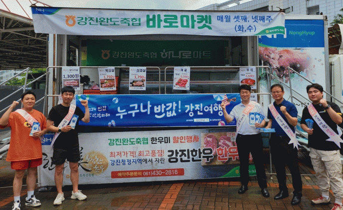 강진군과 강진완도축협은 지난 24일 경기도 과천시 경마공원 바로마켓 직거래장터에 참가해 강진 한우 이동 할인판매 행사를 실시하면서 장터를 방문한 고객을 대상으로 ‘반값 강진여행’과 함께 ‘강진 한우 소비촉진을 위한 홍보 활동’을 펼쳤다.