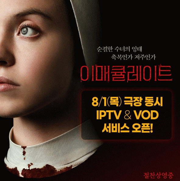 극장을 넘어 원할 때면 언제든 핏빛 공포로 더위를 날려줄 '이매큘레이트'는 오늘부터 IPTV 및 VOD 서비스로 언제든 만날 수 있다.