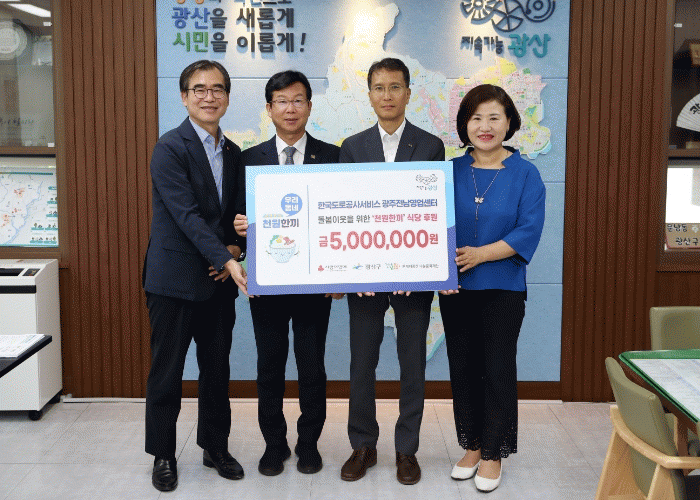후원한 금액은 한국도로공사서비스(주) 광주전남영업센터 직원들이 십시일반 모아 마련했다. ‘우리동네 천원한끼’ 식당 운영비, 식자재비 등을 지원하는 데 쓰일 예정이다. 식당 이용자 중 지원이 필요한 취약계층이 확인되면 생계?의료 등 긴급 지원에도 사용할 계획이다.