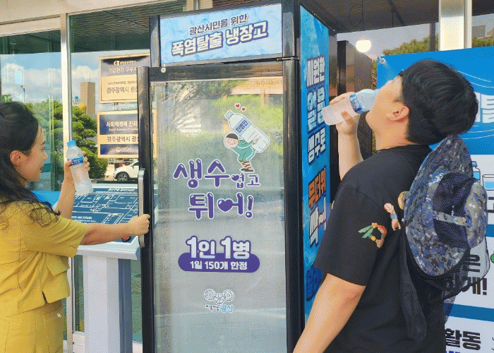 우선 1일부터 광산구청사, 동 행정복지센터 등 총 18개 소에 ‘얼음 생수 나눔 냉동고’를 설치?운영한다. 이달까지 냉동고마다 매일 얼음 생수 150개를 채워 두고, 더위에 지친 시민이 자유롭게 꺼내어 마실 수 있도록 할 계획이다. 단, 1인당 하루 1병씩 제공한다.