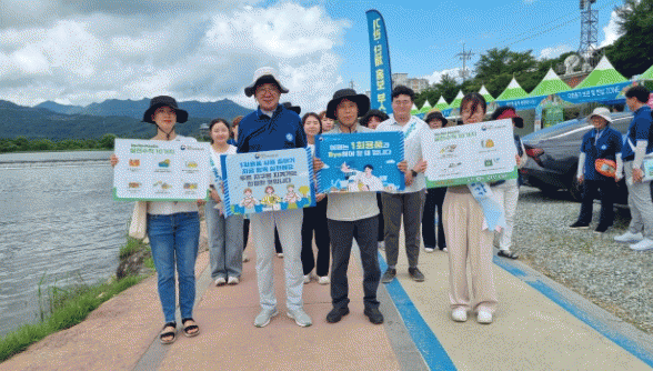 이날 장흥군은 영산강유역환경청과 함께 ‘1회용품 Bye’와 ‘1회용품 사용 줄이기 지금 함께 실천해요’라는 주제로 축제장 관광객들에게 다회용기 사용의 적극적인 참여를 유도했다.