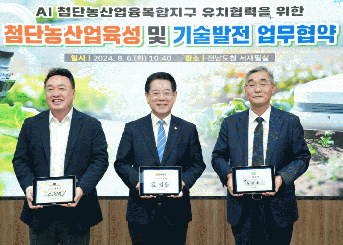 원유현 대표이사는 “농도인 전남도와 농업을 인공지능 첨단농산업으로 대전환하는 그 시작을 함께하게 돼 기쁘다”며 “앞으로 인공지능 기반 다양한 미래농업 솔루션 서비스, 노지 정밀농업, 스마트파밍 등 개발·보급에 협력해 전남의 첨단농산업 육성에 보탬이 되도록 노력하겠다”고 밝혔다.