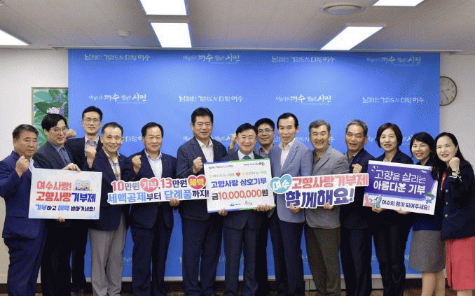 정기명 시장은 “지역의 상생발전에 뜻을 모아준 두 지부의 임직원 여러분께 감사드린다”며 “고향사랑기부제를 통해 지역소멸 위기를 함께 극복하고 여수를 응원하는 마음에 보답할 수 있도록 최선을 다해 시정을 운영하겠다”고 전했다.