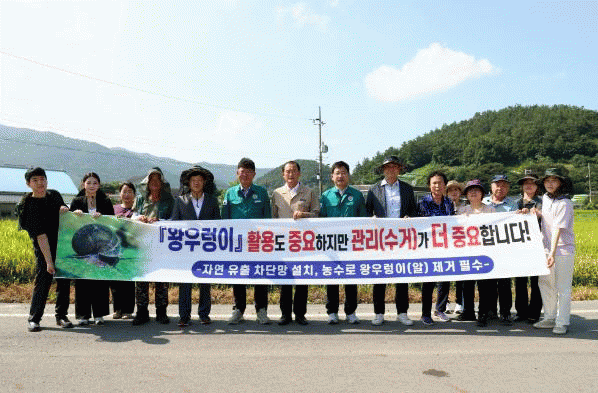 또한, 왕우렁이 관리를 위해 8월 말까지 수거 기간을 운영하고, 왕우렁이 농법을 실천하는 농가가 농경지와 용·배수로 주변에서 유실된 왕우렁이를 자발적으로 수거하도록 캠페인을 실시했다.