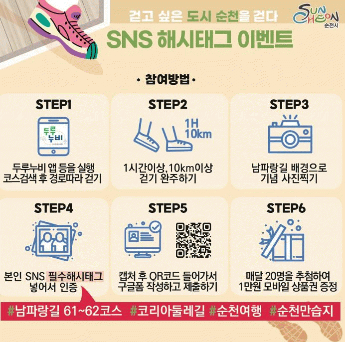 이번 이벤트는 두루누비 앱을 통해 남파랑길 순천 구간(61