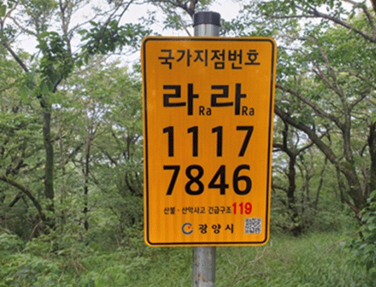 국가지점번호판은 산악이나 해안 등 도로명주소가 없는 비거주 지역의 위치정보를 표시한 번호판이다.
