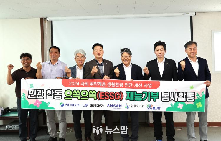 전남개발공사 장충모 사장은 “어려운 경제 상황에도 큰 힘을 보태주신 대호전기, 안산조경, 녹색조경 관계자 분들께 감사드린다. 재능기부 활동은 단순 노동 봉사의 가치를 넘어 더불어 사는 삶의 참된 의미를 깨닫는 소중한 경험” 이라며, “앞으로도 민‧관 협력체계를 바탕으로 취약계층 복지실현 및 삶의 질 향상을 위한 지역 맞춤형 사회공헌을 지속 추진하겠다”고 전했다.