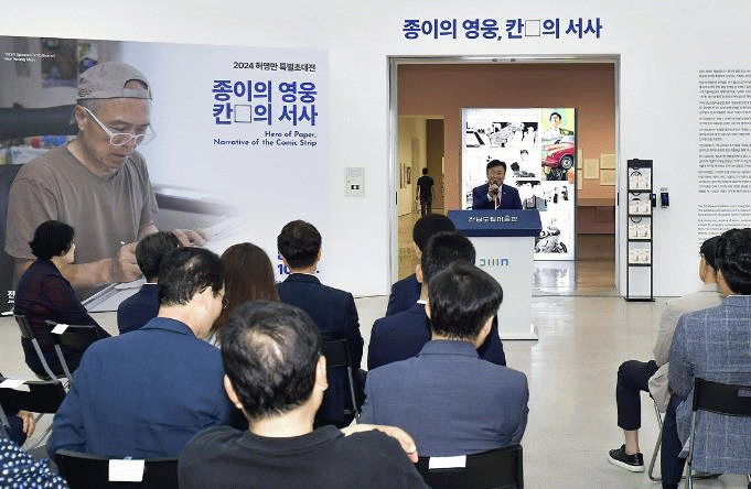 ‘종이의 영웅, 칸의 서사’라는 주제로 열린 이번 기념전 개막식에는 정기명 여수시장, 김영록 전라남도지사, 이광일 전남도의회 부의장을 비롯한 도의원 등 100여 명이 참석한 가운데 축하공연과 축사, 전시 관람 순으로 진행됐다.