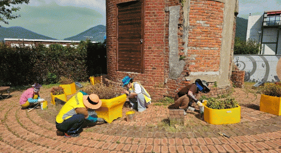 이날 활동에는 주민자치회 회원 30여 명이 자발적으로 참여하여 고소벽화마을과 오포대, 진남로상가, 교동시장 등에 방치되어 퇴색된 마이카 화분 60여 개를 도색하고 주변 환경정비에 나섰다.